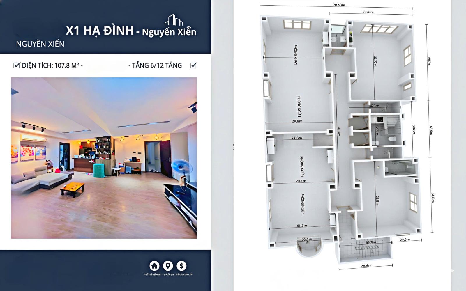 Giá Sốc X1 Hạ Đình 6,6 tỷ . Tầng 6, mỗi tầng 4 đến 6 căn hộ, LH 0936 245 743