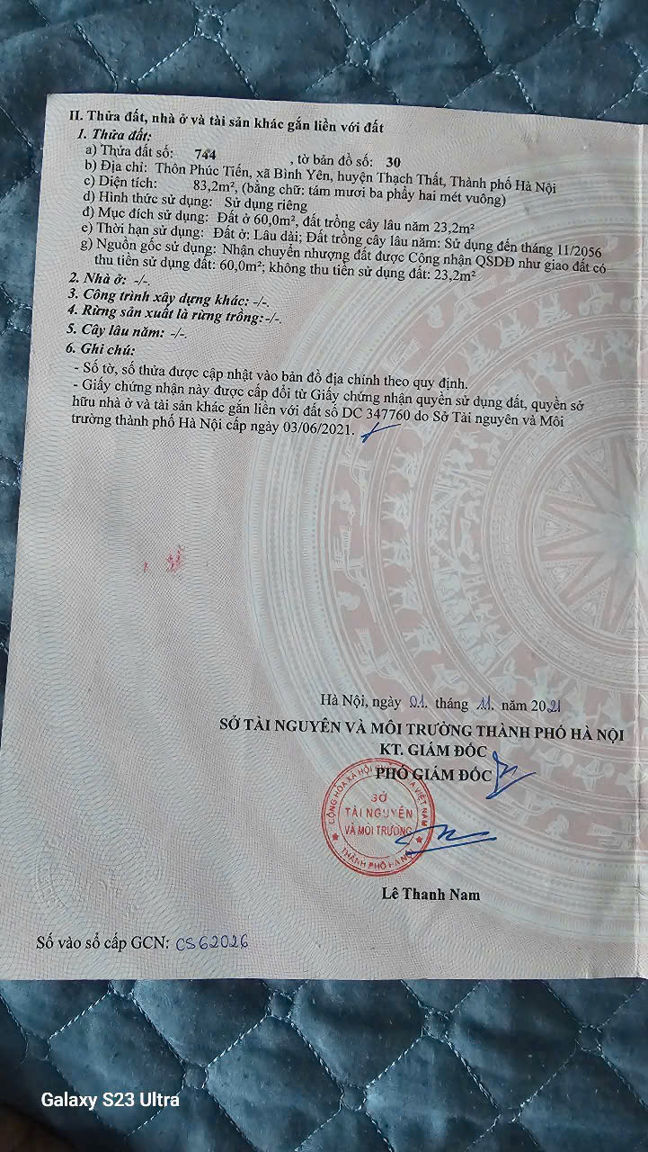 Chính chủ cần tiền gấp bán nhanh lô đất đẹp gần hồ chỉ 2 tỷ 080tr- Bình Yên- Thạch Thất - Hà Nội